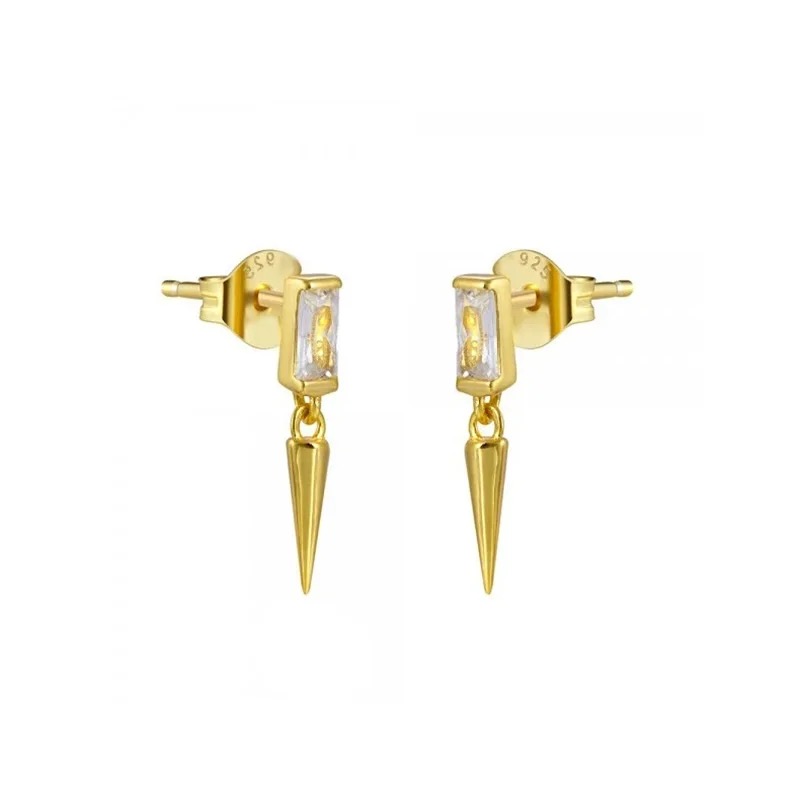 Voeg een stijlvolle touch toe aan je look met onze Cone Studs. Deze prachtige gouden oorbellen hebben een hangend kegeltje en zijn versierd met sprankelende zirkonia steentjes. Perfect voor elke dag of een speciale gelegenheid!